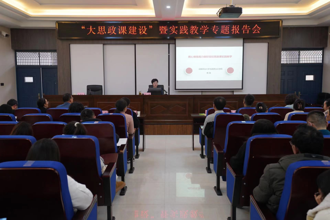 全国高校思政课名师工作室(河南农业大学)负责人陈娱教授以《用心用情用力做好高校思政课实践教学》为题,介绍了高校思政课实践教学的缘起,阐释了高校思政课实践教学的内涵与价值,结合长期教学经验深入分析了高校思政课实践教学的现实与困惑,分享了基于课程性质、行业特点、地方资源、馆课结合的高校思政课实践教学模式。在遵循全员参与、过程可控、教师主导、学生主体、形式多样、综合考评的基本原则基础上,就如何打造思政课实践教学品牌提出了形成统一行动、凝聚广泛共识,建立健全实践教学品牌化的保障体系,建立完善的实践教学品牌化考评体系,通过创新形式进一步拓展实践教学品牌化内容,继续扩大覆盖课程和受众学生五方面的对策,并对我院各门思政课初步形成的实践教学模式和成果进行了诊断和点评,提出了建设性建议。报告内容全面详实,思想深刻且引人入胜,是一场有滋有味有灵魂的思政“金课”。
