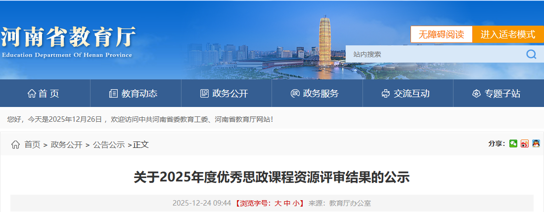 近日,河南省教育厅下发《关于2025年度优秀思政课程资源评审结果公示》,经过高校申报、资格审查、专家评审、综合评议等多环节严格遴选,世界杯体育官方网站世界杯体育官方网站在此次评选中表现突出,共斩获8项省级荣誉,其中“样板课程”1门、示范“金课”一等奖2项,优秀案例特等奖2项、一等奖1项、二等奖2项。